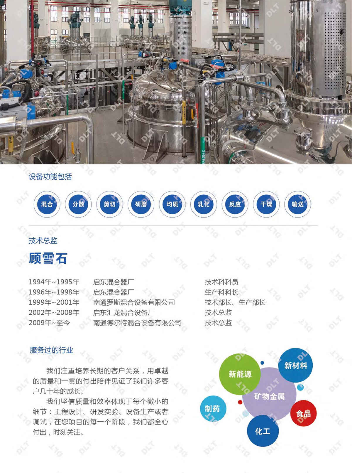 DLT在化工、食品、医药、农药、新能源,造纸等各个行业的解决方案上积累了丰富的经验。